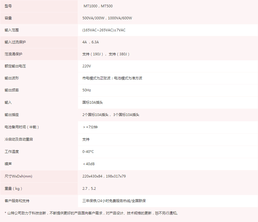 為了滿足不同用戶對UPS后備時間需求, MT系列分為三種型號:標準型、延時型和長效型。